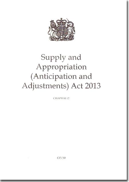 The 'Supply and Appropriation (Anticipation and Adjustments) Act 2013' received Royal Assent on 26th March 2013.